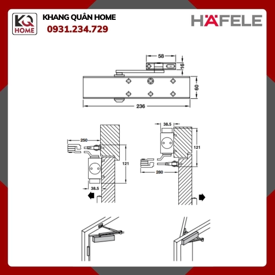 Linh hoạt vượt bậc : Phù hợp với cửa mở trái và phải, có thể điều chỉnh tốc độ đóng và chốt