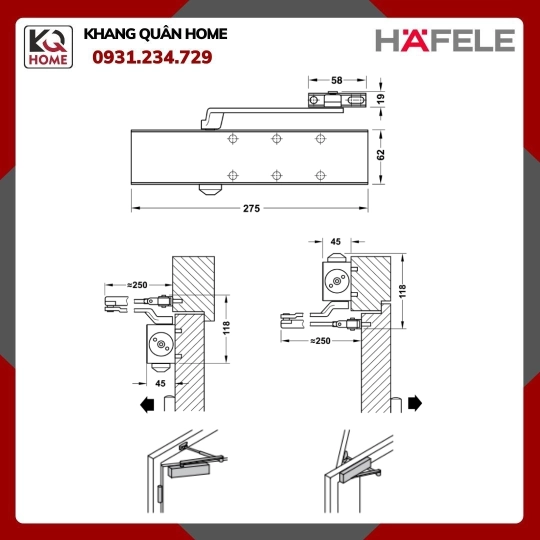 Linh hoạt vượt bậc : Phù hợp với cửa mở trái và phải, có thể điều chỉnh tốc độ đóng và chốt
