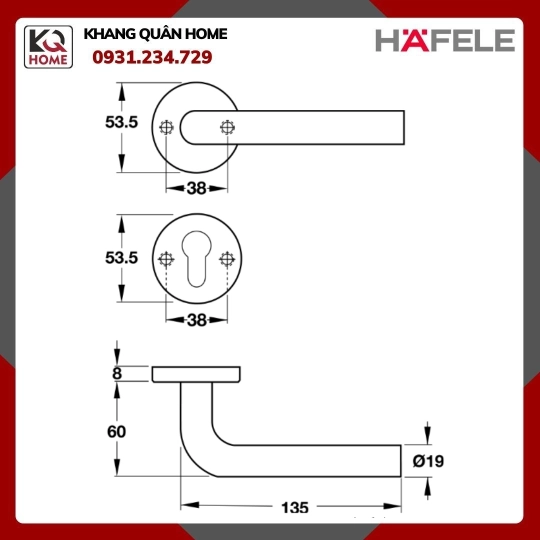 + Các sản phẩm của KHANG QUÂN HOME là sản phẩm Hafele được nhập khẩu và phân phối chính hãng tại Việt Nam. Mọi chính sách bán hàng và bảo hành theo quy định của hãng Hafele sản xuất.