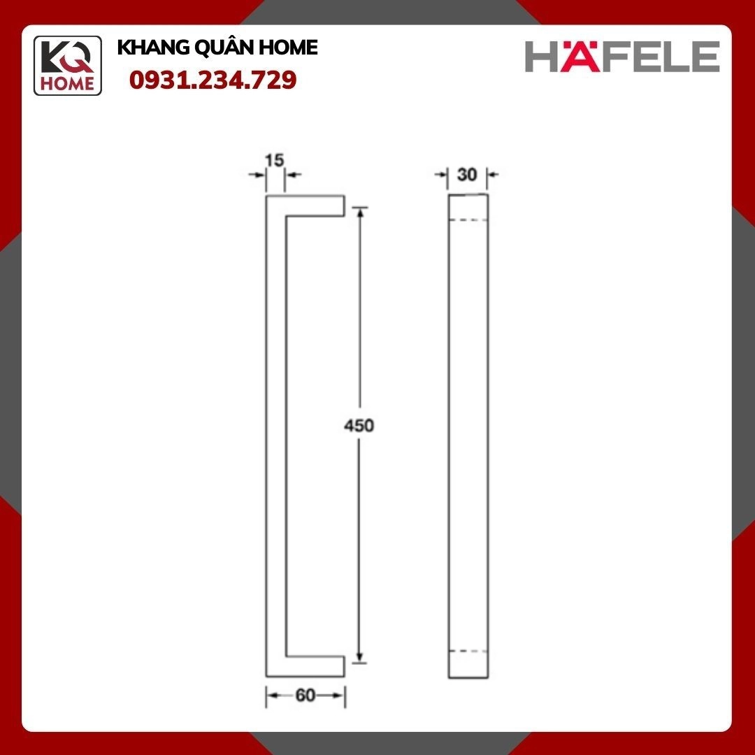 Tay Nắm Kéo Dạng Vuông C/C 450 Hafele 903.02.032