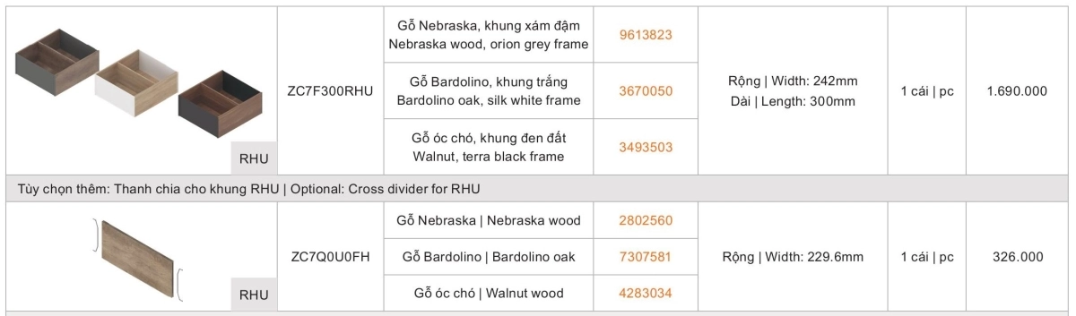 Thanh chia cho Khay Gỗ Thép RHU
