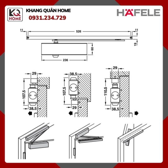 Linh hoạt vượt bậc : Phù hợp với cửa mở trái và phải, có thể điều chỉnh tốc độ đóng và chốt