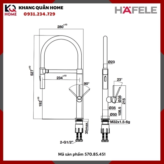 + Các sản phẩm của Khang Quân Home là sản phẩm Hafele được nhập khẩu và phân phối chính hãng tại Việt Nam. Mọi chính sách bán hàng và bảo hành theo quy định của hãng Hafele sản xuất
