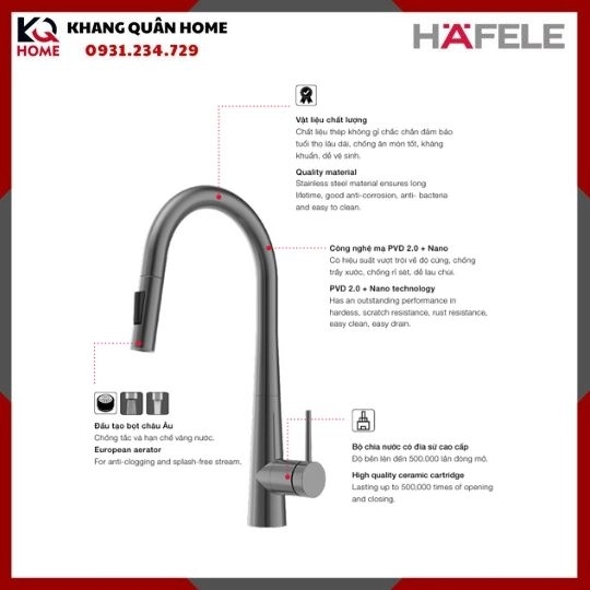 + Thời gian bảo hành Hafele cụ thể, vui lòng click xem tại đây