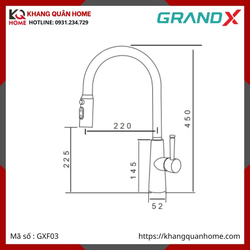 VÒI RỬA CHÉN NÓNG LẠNH DÂY RÚT GRANDX GXF03 DUAL SPRAY