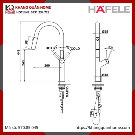 + Các sản phẩm của KHANG QUÂN HOME là sản phẩm Hafele được nhập khẩu và phân phối chính hãng tại Việt Nam. Mọi chính sách bán hàng và bảo hành theo quy định của hãng Hafele sản xuất.